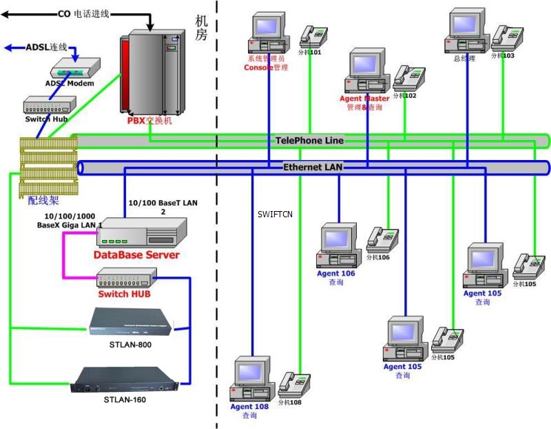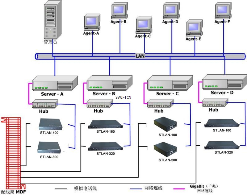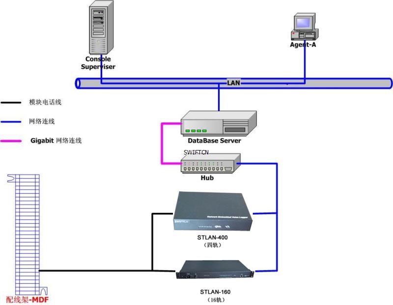 錄音存儲(chǔ)服務(wù)器與STLAN硬件通過(guò)標(biāo)準(zhǔn)TCP/IP協(xié)議網(wǎng)絡(luò)相連,因此不受限于服務(wù)器存放位置,錄音設(shè)備可以放在任何有網(wǎng)絡(luò)接口的地方。
