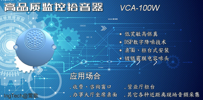 VCA-100W專為小范圍、近距離聲音采集而設(shè)計(jì),靈敏度較低,采用高品質(zhì)的音頭。