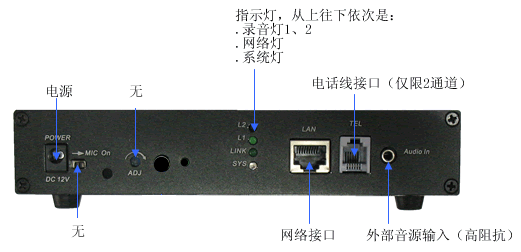 基于它嵌入式的運(yùn)行方案,使得它能靈活適用除電話線路以外的多種模擬信號(hào)音的錄制,諸如調(diào)音臺(tái)、功放、對(duì)講機(jī)、無(wú)線電臺(tái)、拾音器等等。